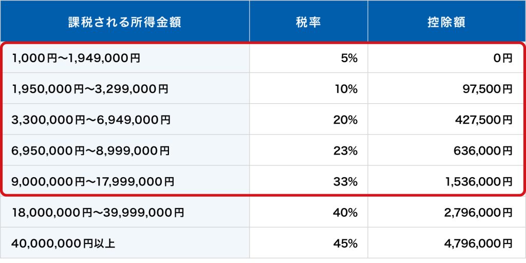 ※税額控除は所得に関わらず一律40%税額が控除されます。所得税率は下記の表に書かれている通りです。