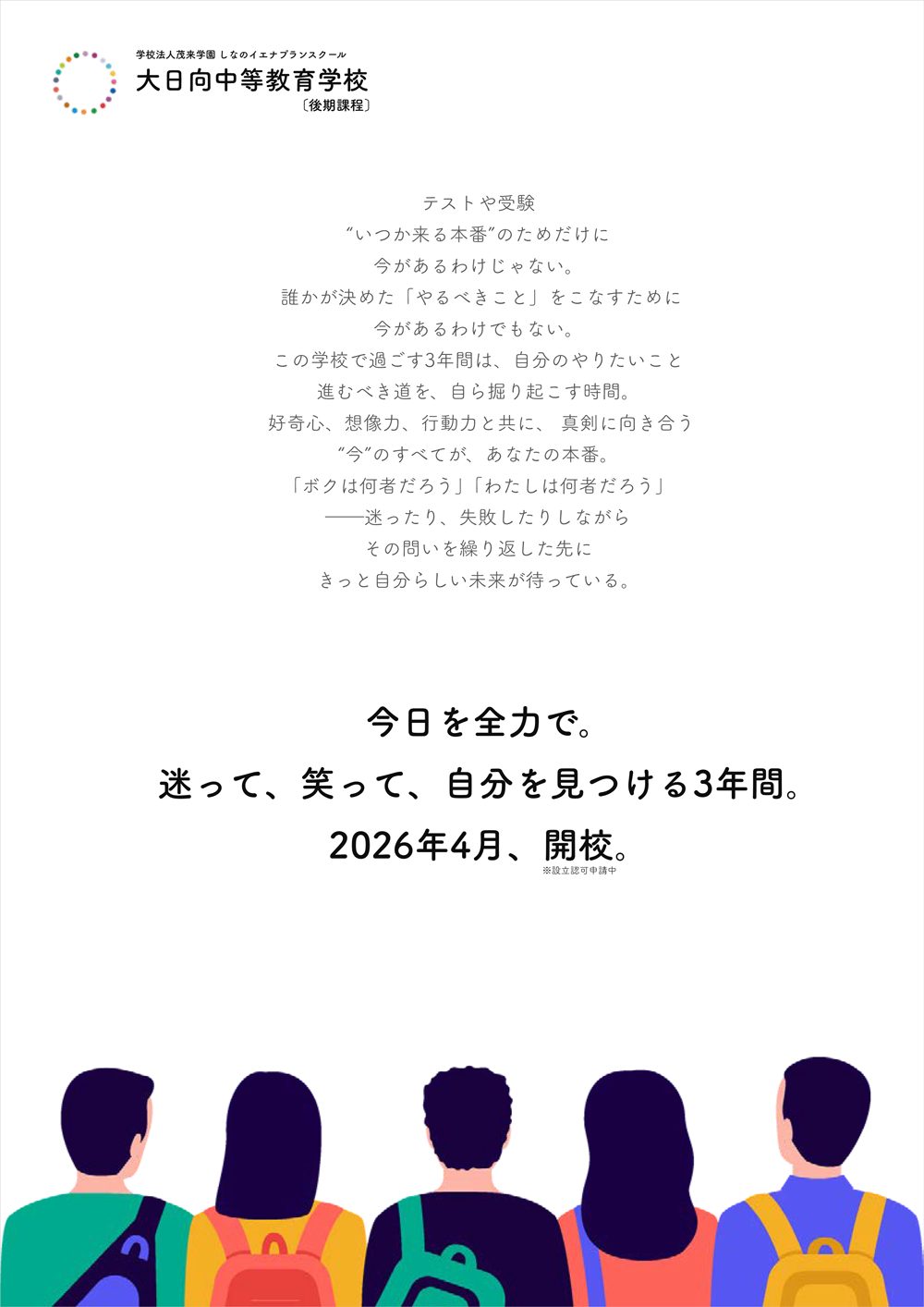 大日向中等教育学校(後期課程)の入学案内パンフレットをダウンロードいただけます。