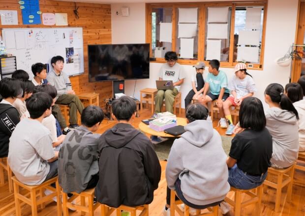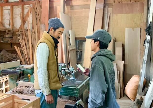 地元の工務店でのインターンのため外出。日本古来の手法と現代のデザインの融合が魅力。SNSを使った集客を増やすため、広報担当者として社員の皆さんと一緒にアイデア出しをする。