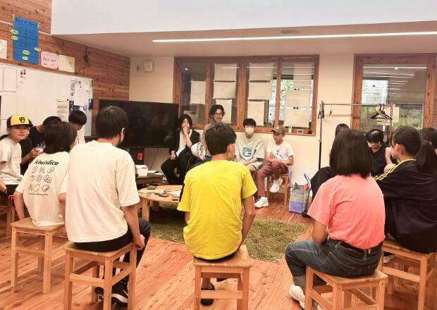 今日を振り返りながら、ゆっくり話す。明日のイベントの持ち物をみんなで確認。