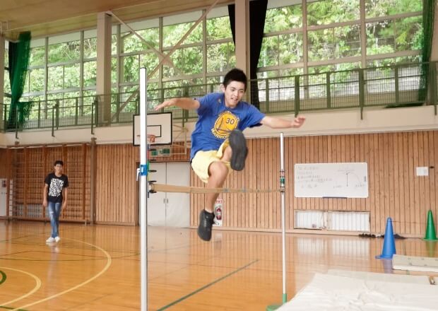 体育館で高跳び。バーへの恐怖心を察した友達が「自分のタイミングでやればいいよ」と声をかけてくれ、思い切って挑戦。3回目でクリアできた。