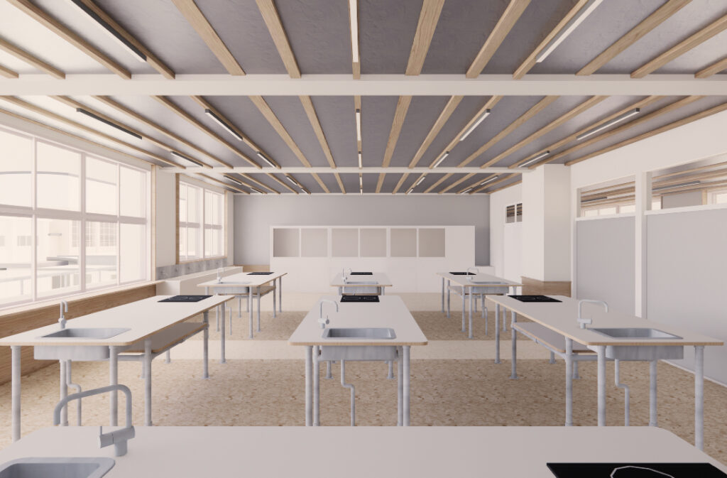 特別教室はミニマルにデザインされ、専門科目を学ぶための教室として以外に、様々な使い方が可能です。
